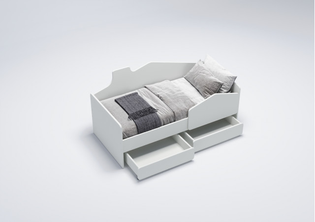 Задний борт кровати стилизован под домик, что создает атмосферу увлекательной игры и фантазии для вашего малыша. Невысокая конструкция кровати обеспечивает легкий доступ для ребенка и позволяет ему легко самостоятельно забираться и спускаться.